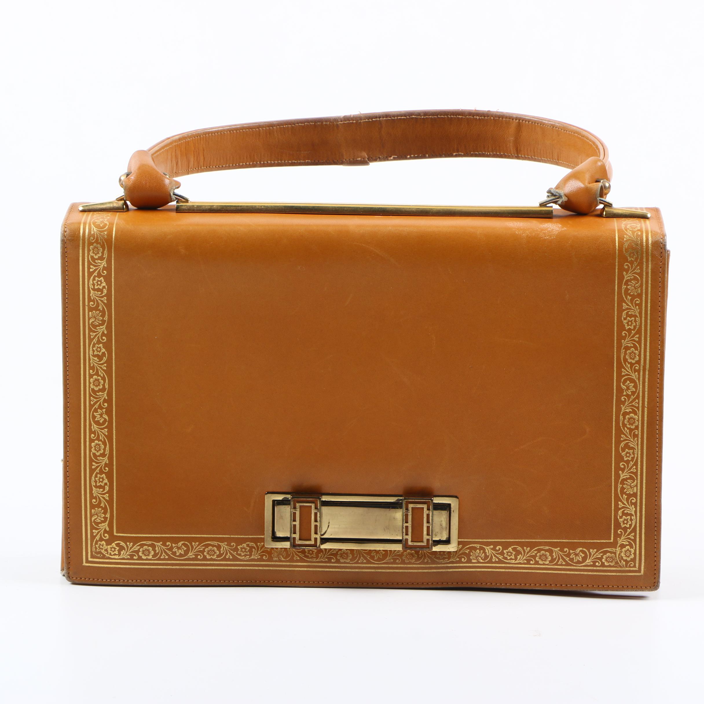 Vintage 1950s Leather School Of Florence Italy Black Gold Embossed Handbag 116 96 Picclick