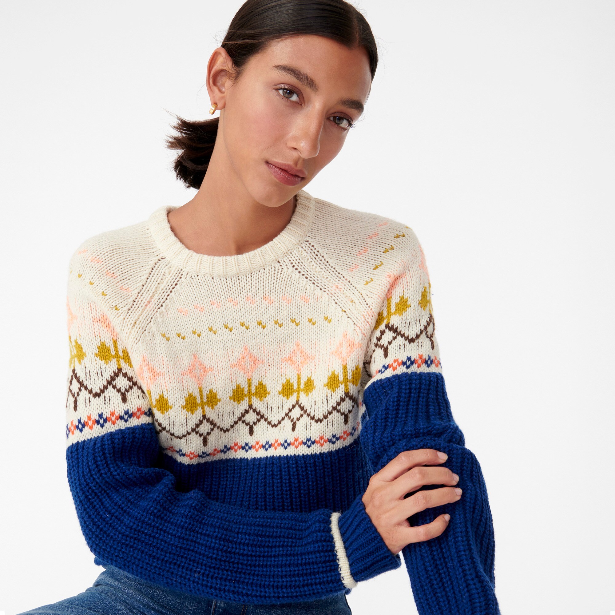 J Crew Floral Fair Isle Crewneck Sweater For Women